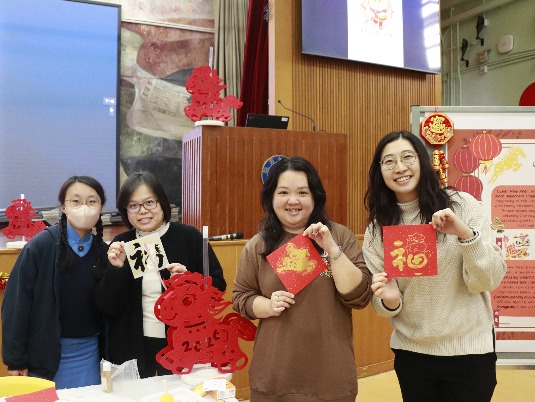 The event featured a captivating performance by our Chinese Orchestra, alongside a variety of game booths. Students enjoyed quizzes on Lunar New Year traditions, festive handicraft-making, and the traditional art of Spring Couplet writing. The fair received an enthusiastic response, with both staff and students learning more about traditional Chinese festivals and thoroughly enjoying the joyful and festive atmosphere.